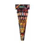 Rasant faszinierende 5er-Schussfolge startend mit silbernen Blinksternbuketts mit verschiedenen Farbsternen. Anschließend übergehend in Goldweideneffekte mit verschiedenen bunten Sternen, abgelöst von Doppelgoldeffekten sowie Brokat-Goldweiden-Effekten mit bunten Sternen zu Knistersternen. Und als großes Finale hammerharte Titansaluts.