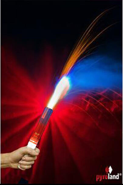 Das Pyroland „Breslauer Handfeuer“ brennt ca. eine Minute lang mit greller, blendender farbiger Flamme ab und setzt im Gegensatz zu unserem „Bengalrohr“ wesentlich mehr Rauch und Funken frei. Das Besondere: Man darf es ganz offiziell in der Hand halten und eignet sich daher hervorragend für szenische Darstellungen oder Illuminationen auf Veranstaltungen, die Kennzeichnungen von Gefahrenstellen oder für Showproduktionen und Feuerwerke. Das „Breslauer Handfeuer“ darf auch auf nicht brennbaren Untergründen installiert werden. Für den professionellen Einsatz kann ein elektrischer Anzünder zum Auslösen verwendet werden. Abmessungen/Stück: 25×3,2x2cm Für alle Kunden, die sich etwas weniger Rauchentwicklung und ein klares Flammenbild wünschen, halten wir unser „Bengalrohr“ hier im Shop parat. 1 Bengalrohr