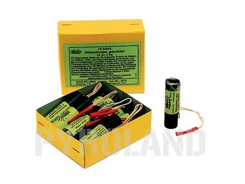 Mit grüner Leuchtbasis abbrendende Silberfontäne mit einer Brenndauer von ca. 10 Sek. und einer Effekthöhe von ca. 3,5m. 1 Packung á 10 Stück Elektrisch zündbar! Mit einer geeigneten Zündanlage nutzen. Technische Voraussetzungen: Mindestens 12V oder 0,85