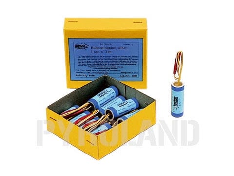 Raucharme Silberfontäne mit einer Brenndauer von ca. 1 Sek. und einer Effekthöhe von ca. 3m. Wir statten jedes Theater und jede Bühne mit den passenden Produkten aus! Auch zu jeder Veranstaltung in Discotheken und von DJs sind unsere Artikel immer wieder im Einsatz! 1 Packung á 10 Stück Elektrisch zündbar! Mit einer geeigneten Zündanlage nutzen. Technische Voraussetzungen: Mindestens 12V oder 0,85