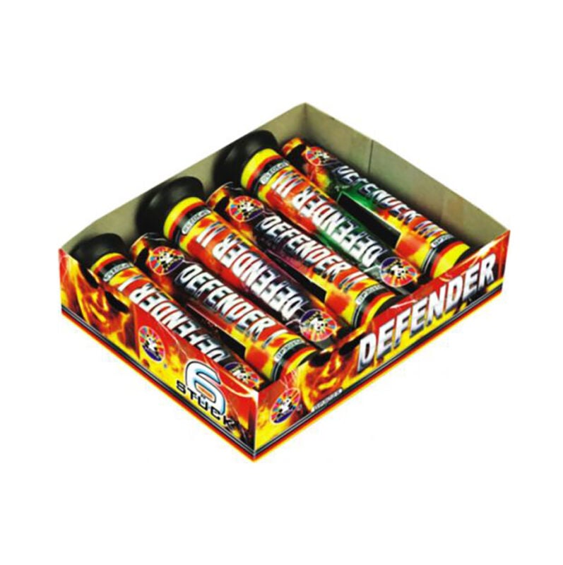 6-teiliges Bombenrohrset Defender I grüner Aufstieg zu Crackling Defender II roter Aufstieg zu crackling Defender III silberner Aufstieg zu