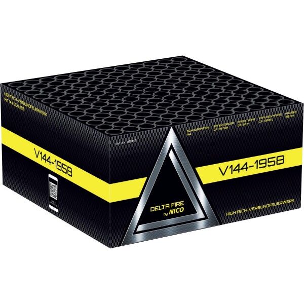 4er-Premium-Batterieverbund mit Finale und 144 Schuss. Phase 1: 36 Schuss Batterie, mit lautstark zerlegenden Effekten mit verschiedenfarbigen Glitzer-Buketts, gefolgt von 6 Schuss mit Chrysanthemen-Effekten