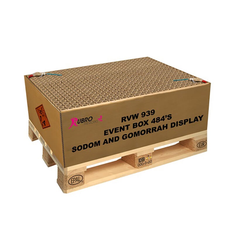 Event Sodom and Gomorrah 484-Schuss-Feuerwerkverbund Triple Compound im Stahlkäfig Bestehend aus 3 Verbünden, die nicht miteinander verleitet sind.