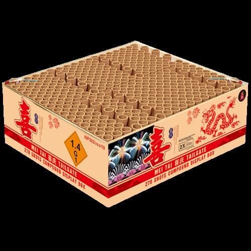 Mei Tai Tailgate – farbenfroh und lang brennend Zu einer richtigen Silvesterparty gehört auf jeden Fall ein Feuerwerk, das die Gäste erfreut. Geisha-Rubro Mei Tai Tailgate ist ein besonders attraktives Verbundfeuerwerk. Es sorgt mit verschiedenen Farben, einer langen Brenndauer und lauten Schusssalven für gute Unterhaltung. Mit diesem Feuerwerkverbund gelingt es ohne Zweifel, böse Geister zu vertreiben und gut ins neue Jahr zu starten! Vorteile eines Feuerwerkverbundes Du möchtest als Gastgeber für tolles Entertainment sorgen, aber nicht ständig draußen stehen und diverse Feuerwerkskörper entzünden? Dann ist ein Verbundfeuerwerk von Pyroland die richtige Entscheidung: Beeindruckende Showeffekte sind Dir mit dem Geisha-Rubro Mei Tai Tailgate 270-Schuss-Feuerwerkverbund sicher! Das Produkt kann einzeln geschossen werden oder mit Anzündlitze verbunden werden, die separat bei uns erhältlich ist. Feuerwerksspaß Die optischen Effekte des Produktes suchen ihresgleichen: Farbenfrohe, unterschiedliche Muster sind Garant für Abwechslung. Bereite Deine Gäste auf eine laute Lautstärke der Salven vor. Da die Brenndauer ca. 150 Sekunden beträgt, während der sich diverse Effekte abwechseln, ist für längere gelungene Unterhaltung gesorgt. Bei Pyroland erhältst Du dieses grandiose Feuerwerk von Geisha der Kategorie F2 rechtzeitig vor Silvester. Schon Tage vor dem Jahreswechsel hast Du bereits ein wichtiges Zubehör für die geplante Party. Fehlen nur noch Speisen, Getränke und Deine Gäste.