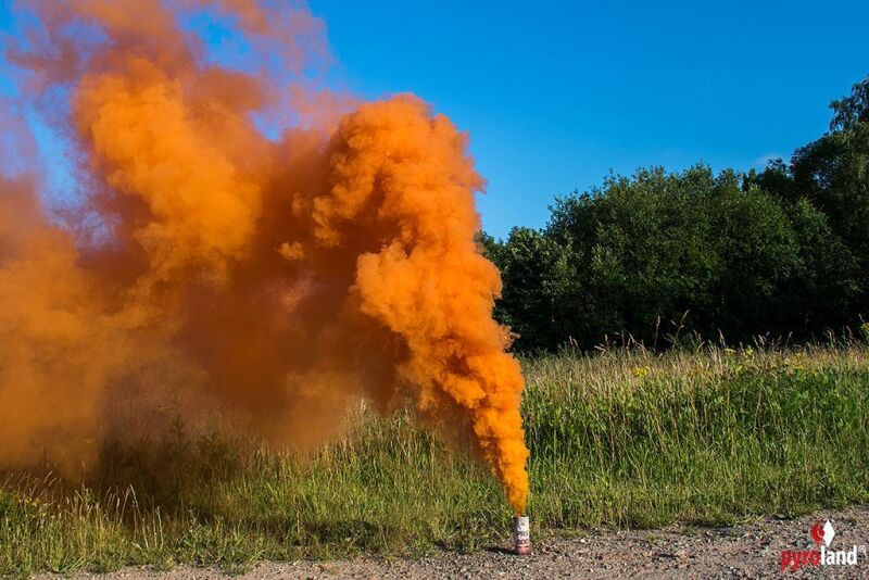 PRS800 Tarnrauch mit Reißzünder PRS800 – einfach am Ring ziehen und auf den Boden stellen. Die Zündung erfolgt nach Ziehen des Rings automatisch, ohne das ein Feuerzeug oder Streichholz benötigt wird. Dieser Reißzünder kann bei besonders windigen Wetterbedingungen von enormem Vorteil oder bei der realistischeren Darstellung von militärischen Manövern in Film, Foto- oder Showproduktionen unabdingbar sein. PRS800 enthält 80 Gramm Rauchpulver und setzt für etwa 40 Sekunden* intensiven, farbigen Rauch frei. Die Rauchentwicklung liegt bei etwa 100 Kubikmetern. Die Handhabung ist spielerisch leicht, der Ring wird seitlich, kräftig (aber nicht ruckartig) vom Gegenstand so weggezogen, dass sich zu keinem Zeitpunkt Körperteile über der Mündung befinden. * Da es sich um Pigmente handelt können Farbintensität und Brenndauer bei unterschiedlichen Wetter- und Lagerbedinungen variieren. 1 Rauchkörper
