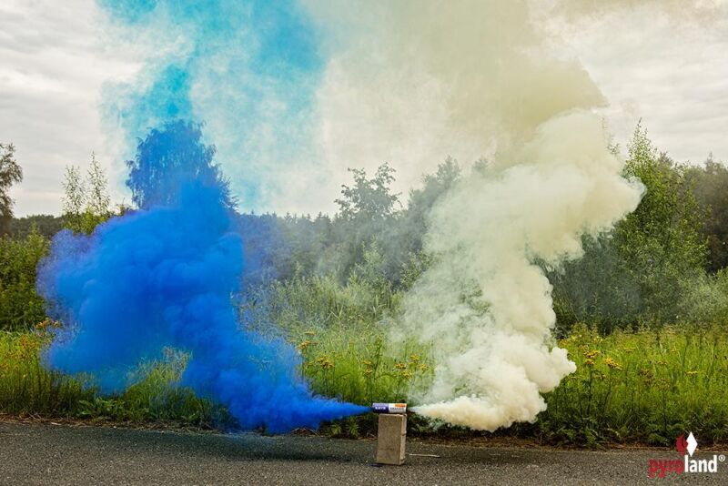 Rauch aus beiden Seiten – das ist die original Pyroland-Rauchgranate mit zweifarbigem Ausstoß. Die Rauchgranate wird waagerecht auf eine feuerfeste Unterlage gelegt und muss nur einmal angezündet werden. Die Rauchgranate ist bestens für Tagfeuerwerke, Vereinsfeiern oder zur szenischen Darstellung von Wappen oder Firmenfarben geeignet. Abmessungen/Stück: Ø4x14cm 1 Rauchkörper