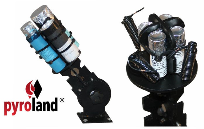 Die Pyroland Single-Shot Halterung für kleine Bühneneffekte bis ca. Kaliber 35mm. Bis zu 4 Effekte können an einem Single-Shot-Halter befestigt werden. Jeder Pyro-Effekt wird mit eigenen Kabelbindern fixiert. Sollte sich ein Effekt beim Abschießen losreißen, bleiben die anderen sicher fixiert. Die runde Auflage-Platte sorgt für ein zuverlässiges Abfangen des Abschuss-Rückstoßes. Sie kann in verschiedenen Höhen arretiert werden, so dass auch Effekte mit kurzen Hülsen optimal befestigt werden können. Alle Teile der Pyroland Single-Shot Halterungen werden in Deutschland hergestellt. Die Laserstrahl-geschnittenen Bauteile ermöglichen exakt gewinkelte Effektbilder. Die mattschwarze Pulverbeschichtung sorgt für eine lange Lebensdauer. Die Bodenplatten der Halterungen können wahlweise mit Schrauben am Bühnenboden, oder mit Hilfe einer Traversen-Schelle an Rohren/Traversen befestigt werden. Die Single-Shot Halterungen für kleine Pyro-Effekte können in 13 verschiedenen Winkeln in 15°-Schritten arretiert werden. 1 Halterung
