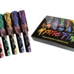 25 Schuss Batterie im Kaliber 30mm mit Feuertöpfen und Buketts aus Dahliensternen in 5 Farben kombiniert mit weißen Blinksternen. Mit abschließender Finalsalve.